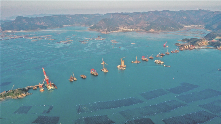 在东吾洋上,A6项目首段路基顺利完成交验、东吾洋特大桥首个主墩墩身顺利浇筑完成、盐田港特大桥左幅中跨顺利合龙……建设者劈波斩浪争创宁上高速“开门红”。