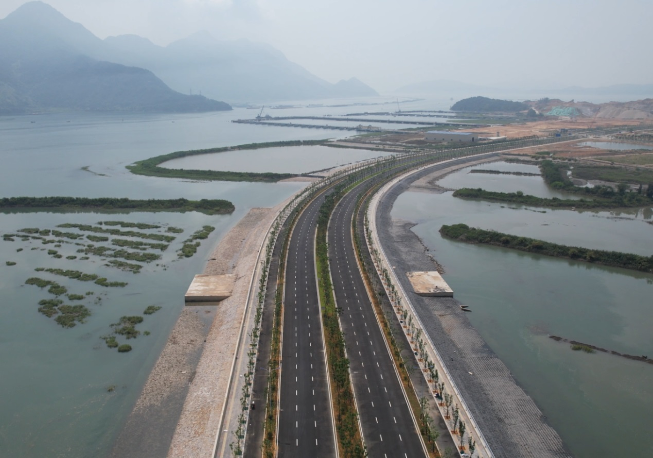 宁德市漳湾大道(下塘至鸟屿段)工程为省市重点项目,道路全长约2.5公里、宽度50米(其中1.29km为堤路结合段),兼具防潮海堤与码头疏港通道双重功能。本工程的建成投用完善了宁德市主城区和宁德(漳湾)临港工业区冶金产业园主干路网,发挥了区域防洪防潮功能作用,为福州港三都澳港区漳湾作业区等重大项目提供交通保障,进一步推动了沿线港口码头开发建设工作。