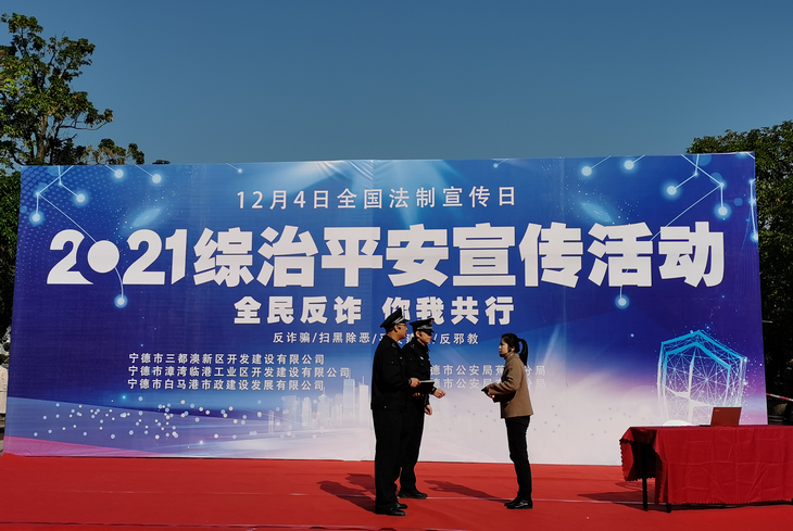 为深化“平安国企”建设,增强国企社会责任,宣传社会治安综合治理相关方针政策,努力营造人民群众积极参与平安建设的良好社会氛围。12月4日上午,在国家“宪法日”之际,女同网站 、市临港公司、市白马港公司联合宁德市公安局蕉城分局、东侨分局在南岸公园开展2021综治平安宣传活动。