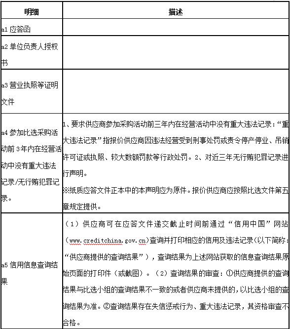 ※比选文件第五章对法定资格条件证明资料已有详细规定和要求(包括特定情形),供应商按照第五章要求提供,并按要求对文件进行签署、盖章等,否则按报价(应答)无效处理。