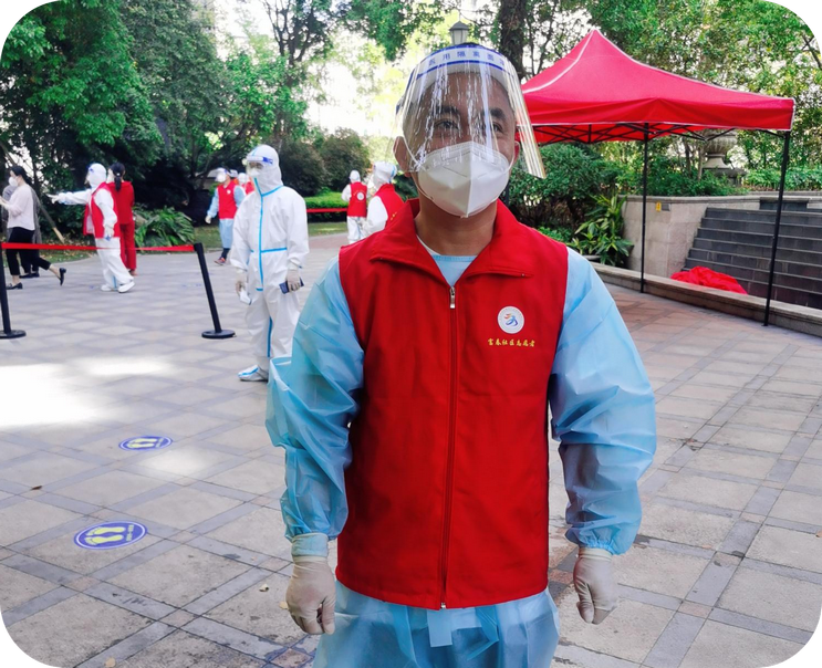 突击队员王功忠下沉泰禾红郡小区,身着“志愿红”在核酸采集点提醒居民保持1米距离线,做好个人防护,引导居民有序参与核酸采集,积极维护现场秩序。