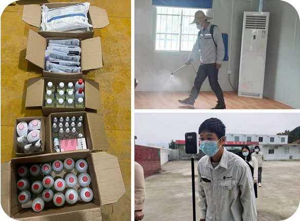 (项目部为复工复产储备防疫物资、开展全面消杀及测温现场)