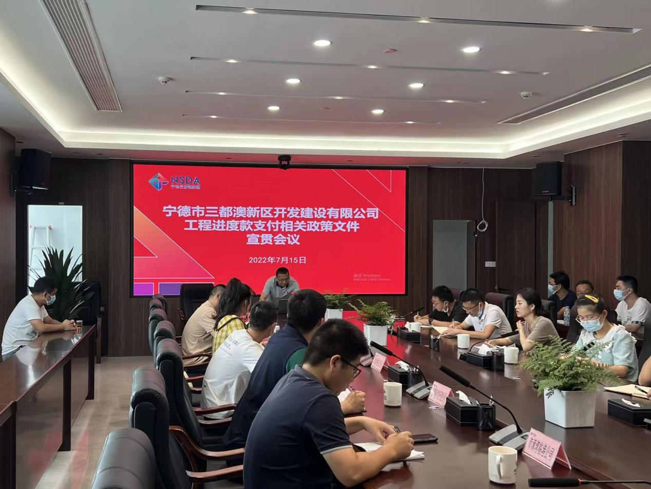会上,公司工程部经理王柳康传达学习了《宁德市三都澳新区开发建设有限公司工程建设管理办法》《宁德市三都澳新区开发建设有限公司工程建设项目服务机构选聘管理暂行办法》、工程进度款支付的相关政策文件及《关于完善建设工程价款结算有关办法的通知》(财建〔2022〕183号),通过工程款支付相关政策的要点解读,建立了工程款支付政策的检索意识,树立“以法治理”的理念,进一步明确了工程款支付的程序和要求。