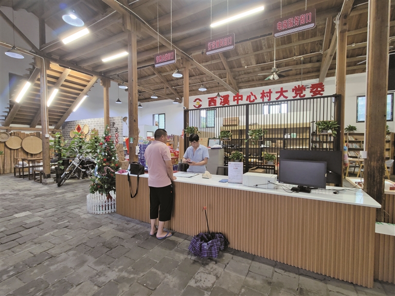 “农村党建便利店”是西溪中心村大党委的主要活动场所,由旧粮仓改造而成。经过多次完善提升,目前具备窗口办事、晨巡晚议、办公开会等功能,“西溪TV”、闽剧票友俱乐部、电商直播间、消费常识宣传、特色产品展示等模块则满足了群众的多样化需求。