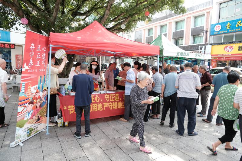 6月25日,蕉城区自然资源局党组成员、自然资源综合执法大队大队长孙成秋带领10名志愿者走进霍童镇人民文化广场开展“存正心、守正道、养正气”践行“节约集约用地 严守耕地红线”主题宣传活动。活动现场,工作人员化身讲解员,通过悬挂宣传标语、设置展板、发放宣传材料等方式,普及了关于永久基本农田和耕地占补平衡的有关知识以及土地违法行为及相应处罚规定,并耐心为群众答疑解惑,受到了群众的一致好评。同时,开展面对面的宣讲,积极倡导耕地保护和节约集约用地的理念,旨在进一步提升了基层群众耕地保护的责任感和使命感,形成“土地养育你我他,耕地保护靠大家”的思想意识。