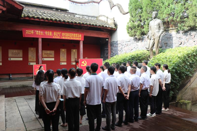 6月25日,人民医院党支部走进蔡威事迹展陈馆组织“存正心、守正道、养正气”时代新风宣传教育活动。“我志愿加入中国共产党,拥护党的纲领,遵守党的章程……”在无名英雄蔡威纪念雕塑前,全体党员干部庄严宣誓。这次宣誓活动比较特殊,既是8名预备党员同志的入党宣誓仪式,也是党支部全体党员重温入党誓词活动。在蔡威立像前,铿锵的誓言振聋发聩,表达了新时代党员干部对党的无限忠诚。