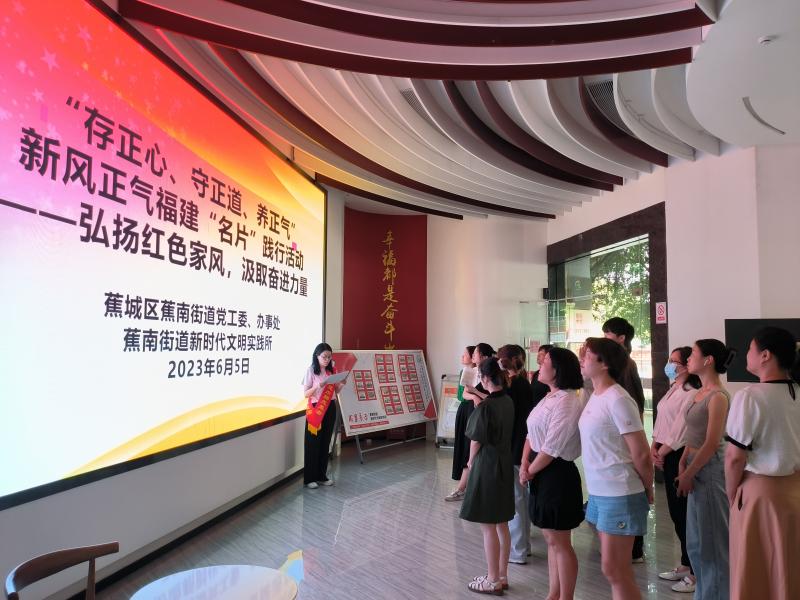 6月5日,蕉南街道开展“存正心、守正道、养正气”新风正气福建“名片”践行活动,教育引导党员干部职工学习红色家风,弘扬老一辈革命家精神,以昂扬斗志投入工作中。活动由街道妇联副主席朱丽华主持。