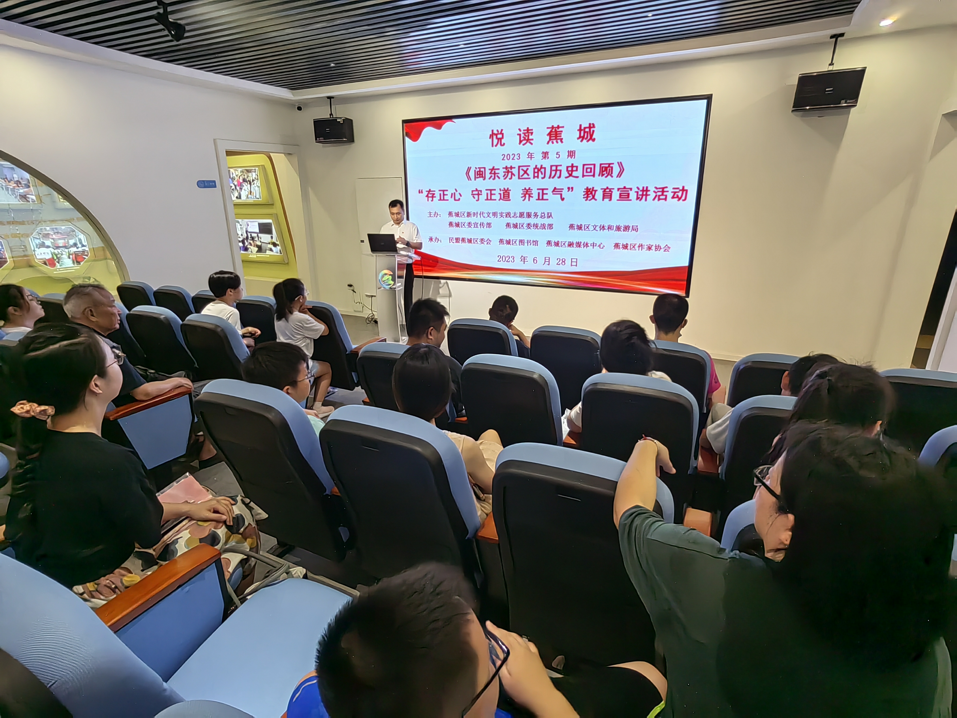 6月28日,蕉城区图书馆联合蕉城区新时代文明实践中心开展悦读蕉城第五期《闽东苏区的历史回顾》—“存正心 守正道 养正气”教育宣讲活动。通过红色文化教育,提高干部群众思想政治觉悟,推送本地红色作品,为党组织开展党员党性教育提供丰富教材,把红色资源作为党性教育的重要载体和生动教材,通过深挖资源优势、开发精品教材、创新教学形式等方式,着力提升干部党员党性意识,凝聚强大精神伟力。