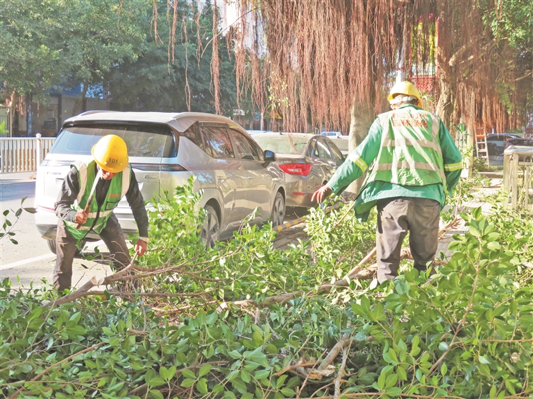 修剪时,养护工人严格按照《福建省园林植物修剪技术规程》、树木种类、树龄、生长习性、树型特点,结合道路类型及现场实际情况,采用人工和机器结合的方式,对鹤峰路、宁川路、闽东西路等路段行道树进行有针对性修剪,科学均衡树势,确保树形美观。修剪完成后,及时清运处置“绿化垃圾”,确保作业现场干净整洁,车辆和行人通行安全。