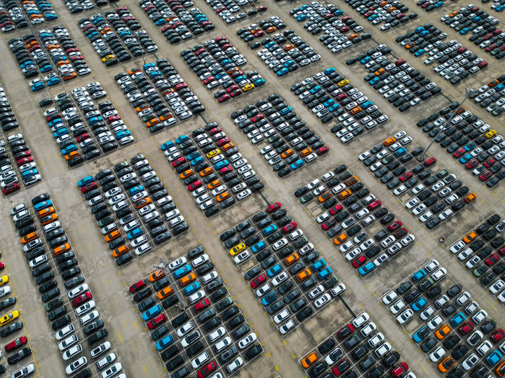这是2月8日在宁德陆港(铁路专用线)拍摄的商品车堆场(无人机照片)。