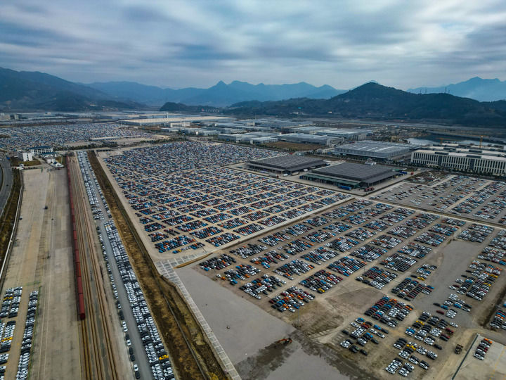 这是2月8日在宁德陆港(铁路专用线)拍摄的商品车堆场。